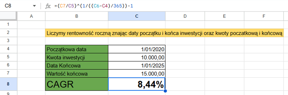 Jak policzyć średnioroczna stopa zwrotu (CAGR)