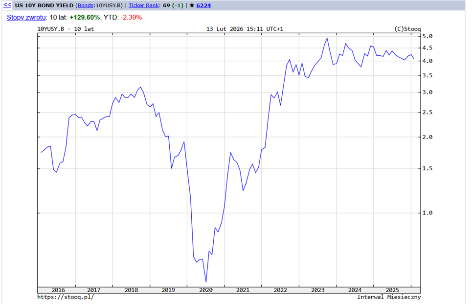 Póki co długoterminowe stopy procentowe w Stanach pozostają na relatywnie wysokim poziomie. I mimo że inflacja spadła, oprocentowanie najbardziej odpowiadających 10-letnich obligacji wcale nie spada. Istnieje więc szansa, że poza samym oprocentowaniem, obligacje tego typu mogą przynieść dodatkowy zysk, gdy długoterminowe stopy procentowe w USA w końcu zaczną maleć.