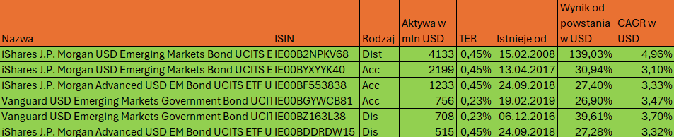 • ETF-y na obligacje krajów rozwijających się denominowane w USD