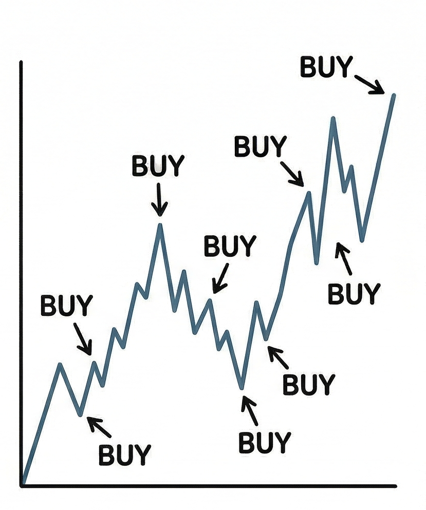 Problem pojawia się przy chęci jednorazowego zainwestowania dużej sumy. Wrzucenie całości to dużo większy stres – ryzykujemy zakup na lokalnej górce, co rodzi frustrację i wyrzuty sumienia, że nie podzieliliśmy transakcji. Z drugiej strony, dzieląc środki na transze, ryzykujemy, że rynek nam ucieknie i będziemy kupować coraz drożej.