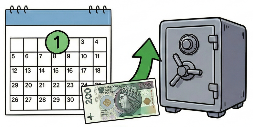 Nie czekaj do końca miesiąca z nadzieją, że jak środki zostaną, to wtedy je przelejesz. Przy takim podejściu ryzykujesz, że po drodze znajdziesz dla tych pieniędzy inne zastosowanie i nie zostanie Ci nic.